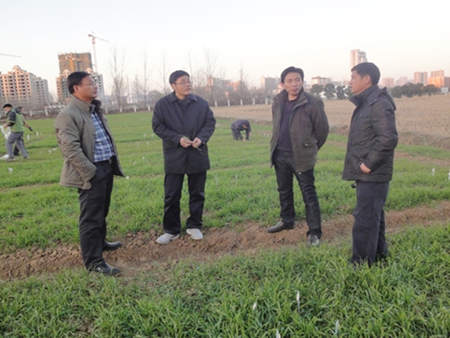 12月17-18日,國家小麥工程技術(shù)研究中心副主任、河南省小麥產(chǎn)業(yè)技術(shù)體系栽培崗位專(zhuān)家王晨陽(yáng)研究員帶領(lǐng)團隊成員謝迎新博士等一行來(lái)信陽(yáng)調研,主要了解信陽(yáng)小麥抗逆增產(chǎn)栽培技術(shù)應用情況、當前小麥苗情長(cháng)勢及生產(chǎn)中存在的問(wèn)題,重點(diǎn)了解稻茬小麥隱性災害發(fā)生情況和小麥生產(chǎn)中遇到的栽培技術(shù)瓶頸問(wèn)題。副院長(cháng)、河南省小麥產(chǎn)業(yè)技術(shù)體系信陽(yáng)綜合試驗站站長(cháng)祁玉良研究員,試驗站團隊成員周?chē)诟毖芯繂T等陪同調研。