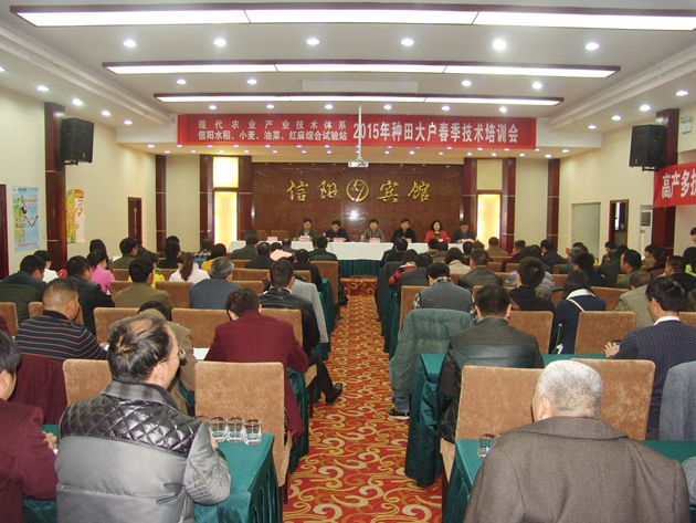 現代農業(yè)產(chǎn)業(yè)技術(shù)體系信陽(yáng)水稻小麥油菜紅麻綜合試驗站2015年春季種田大戶(hù)技術(shù)培訓會(huì )召開(kāi)