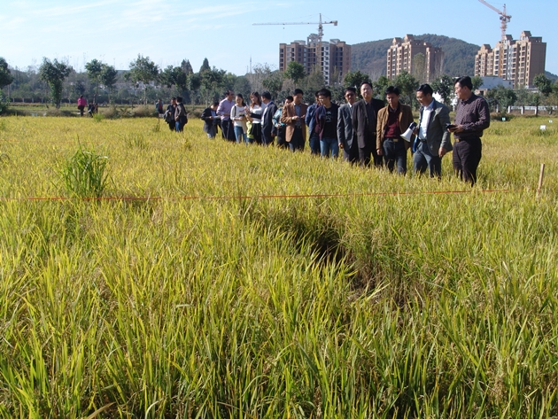為進(jìn)一步提升我市水稻生產(chǎn)的技術(shù)水平,10月27日,由市科技局主辦、我院承辦召開(kāi)了全市再生稻技術(shù)觀(guān)摩暨技術(shù)培訓會(huì )。省農科院糧作所水稻專(zhuān)家、河南省水稻產(chǎn)業(yè)技術(shù)體系首席專(zhuān)家尹海慶研究員,市科技局副局長(cháng)汪金柱,市農科院副院長(cháng)、河南省水稻產(chǎn)業(yè)技術(shù)體系信陽(yáng)綜合試驗站站長(cháng)劉祥臣出席會(huì )議。市科技局、市農科院有關(guān)科室負責同志和專(zhuān)家,羅山、商城、潢川、光山、淮濱等縣科技局的負責同志及部分種糧大戶(hù)等30余人參加了會(huì )議。
