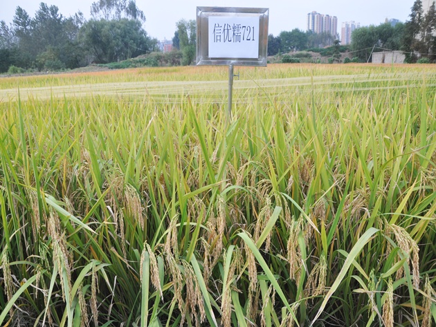 信優(yōu)糯721(審定編號:豫審稻20180002)屬三系雜交糯稻,株高123.5-134.2厘米,全生育期143天。平均畝有效穗16.8-23.2萬(wàn)穗,每穗總粒數176.2-180.6粒,結實(shí)率80.7-87.8%,千粒重27.7-28.4克。2015年起連續兩年參加河南省南部稻區中秈稻區域試驗,兩年平均畝產(chǎn)稻谷643.8公斤,比對照豐兩優(yōu)四號增產(chǎn)7.4%,達極顯著(zhù)水平。2017年參加河南省秈稻品種生產(chǎn)試驗,平均畝產(chǎn)稻谷614.2公斤,比對照品種豐兩優(yōu)四號增產(chǎn)7.4%。2015-2016年經(jīng)農業(yè)部食品質(zhì)量監督檢驗測試中心(武漢)稻米品質(zhì)檢測,稻米品質(zhì)達國標《優(yōu)質(zhì)稻谷》優(yōu)質(zhì)糯米標準(GB/T17897-1999)。該品種的不育系信3122Awx和恢復系信糯恢721均為我院自主培育,擁有完全的自主知識產(chǎn)權。