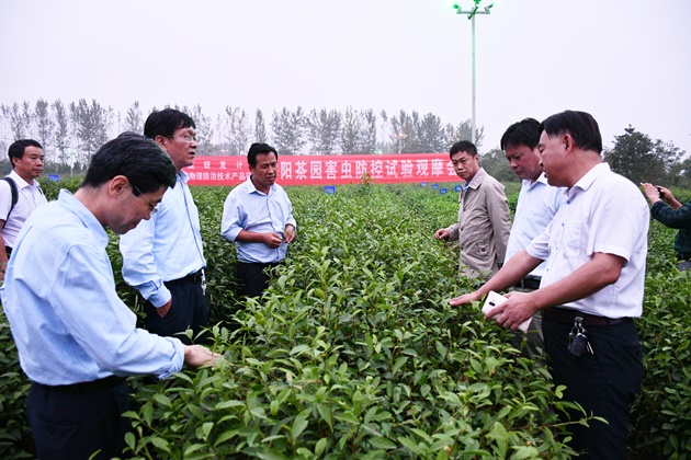 9月17日—18日在我院段總農藝師的陪同下,中國農科院植保所副所長(cháng)邱德文研究員(項目首席)雷仲仁研究員,張應剛總經(jīng)理,河南省農科院植保所副所長(cháng)封洪強研究員,武予清研究員,信陽(yáng)農林學(xué)院尹劍教授,駐馬店農機站劉站長(cháng)及同事,我院茶葉所所長(cháng)呂立哲研究員,植保所所長(cháng)盧兆成研究員。一起參觀(guān)了我所承擔的茶園燈光控蟲(chóng)試驗,聽(tīng)取了試驗匯報,并座談,對我院的工作給以肯定,也對下年試驗提出了進(jìn)一步的要求,要求擴寬燈光調查的范圍,研究茶葉在燈光照射下的生長(cháng)變化。