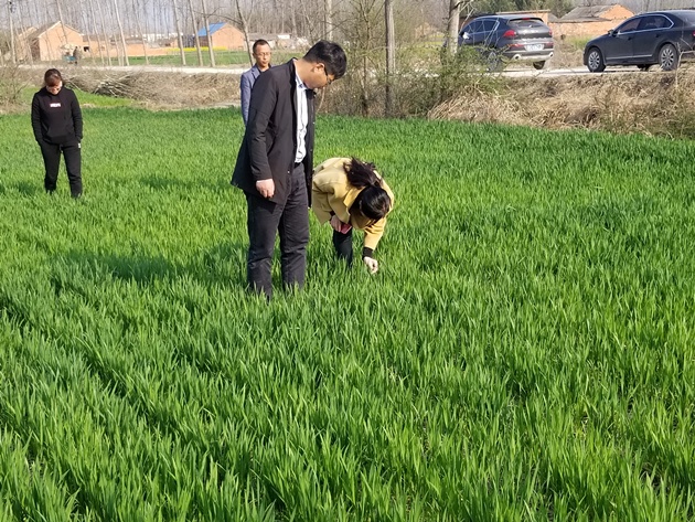 培訓會(huì )結束后,周?chē)诟毖芯繂T與院派駐該村第一書(shū)記陳振一起,現場(chǎng)查看了村里的部分麥田,詳細了解田間苗情,對不同田塊有針對性的提出了下一階段的田間管理意見(jiàn)。