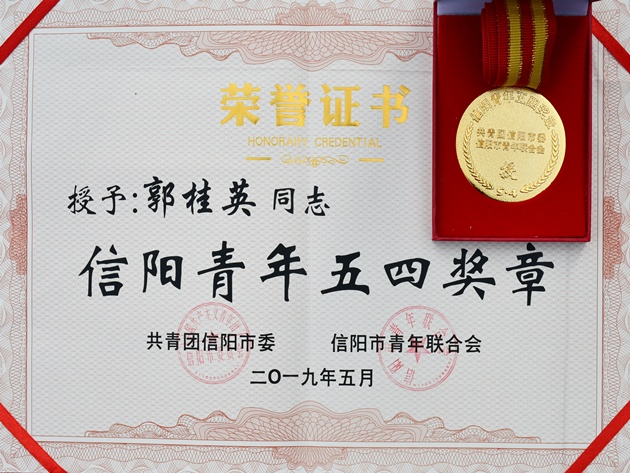 “信陽(yáng)青年五四獎?wù)?rdquo;是共青團信陽(yáng)市委、信陽(yáng)市青年聯(lián)合會(huì )授予為全市改革發(fā)展做出杰出貢獻的青年和青年集體的最高榮譽(yù)。此次表彰共授予了26名同志“信陽(yáng)青年五四獎?wù)?rdquo;和15個(gè)青年集體“信陽(yáng)青年五四獎?wù)录w”,郭桂英同志是此次表彰中全市農科系統惟一獲此榮譽(yù)的科研工作者。