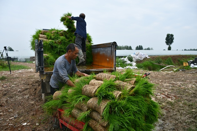 羅山縣蓮花農機農藝專(zhuān)業(yè)合作社在我院的引導下,建有育秧大棚75座,每批次可育秧苗20余萬(wàn)盤(pán),年育秧50余萬(wàn)盤(pán),可栽插水稻3萬(wàn)多畝。今年持續的高溫干旱期造成各地缺水嚴重,對水稻生產(chǎn)造成較大影響,很多農戶(hù)所育的秧苗因缺水無(wú)法如期栽插而老化,一旦旱情解除將面臨無(wú)秧可插的局面。在旱情正嚴重時(shí),合作社理事長(cháng)包乃勇與市農科院專(zhuān)家多次溝通交流,最終作出了增育秧苗15萬(wàn)盤(pán)的大膽決定。目前旱情緩解,無(wú)水插秧的問(wèn)題已徹底解決,包乃勇一顆懸著(zhù)的心終于放了下來(lái)。6月19日下午,當我院的專(zhuān)家來(lái)到該合作社時(shí),前來(lái)購買(mǎi)秧苗的車(chē)輛絡(luò )繹不絕,育秧大棚里,工人們正忙著(zhù)給育秧盤(pán)打卷、裝車(chē),今年應對旱情增育的15萬(wàn)盤(pán)秧苗已銷(xiāo)售一空。一見(jiàn)面,包乃勇就熱情地握住市農科院專(zhuān)家們的手,對他們的幫助表示由衷地感謝。他激動(dòng)地說(shuō),正是由于市農科院專(zhuān)家團隊的專(zhuān)業(yè)判斷和敬業(yè)精神,讓自己作出了正確的決策,合作社取得了較好的經(jīng)濟收入,從更深層次講,這15萬(wàn)盤(pán)秧可滿(mǎn)足1多萬(wàn)畝的用秧需求,產(chǎn)生了較大的社會(huì )效益,對保障國家糧食安全也做出了自己的貢獻。