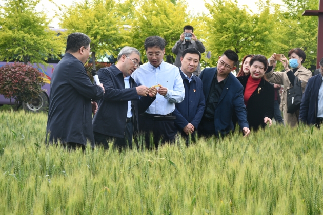 4月26日下午,與會(huì )人員實(shí)地觀(guān)摩了位于項店鎮李樓村的河南省“四優(yōu)四化”優(yōu)質(zhì)弱筋及釀酒小麥示范基地,李向東首席對項目進(jìn)展和基地情況進(jìn)行了介紹,雷振生所長(cháng)逐一介紹了釀酒小麥品種的選育和應用情況。通過(guò)觀(guān)摩,使參會(huì )人員對我省弱筋小麥新品種及釀酒專(zhuān)用新品種的研發(fā)、利用、生產(chǎn)情況及產(chǎn)業(yè)發(fā)展趨勢有了更加深入的了解。隨后與會(huì )人員還實(shí)地調研了息縣弱筋小麥、甘薯產(chǎn)業(yè)的發(fā)展情況,考察了息縣惠農之家、河南豫道農業(yè)科技有限公司、宏升糧食制品有限公司,并為省農科院優(yōu)質(zhì)弱筋小麥專(zhuān)家工作站舉行了揭牌儀式。