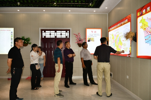 下午,服務(wù)團和淮濱縣工信局深入到王店鄉河南昌佳農業(yè)科技發(fā)展有限公司粳稻生產(chǎn)基地和黨建聯(lián)盟產(chǎn)品展廳進(jìn)行考察。在優(yōu)質(zhì)粳稻生產(chǎn)基地,一邊聽(tīng)取公司詳細介紹粳稻品種選擇、播期、育秧、移栽、施肥、病蟲(chóng)防治等前期管理情況,一邊實(shí)地查看粳稻生長(cháng)情況,團隊成員來(lái)到田間地頭,仔細查看稻薊馬,稻瘟病等病蟲(chóng)發(fā)生及危害程度,并介紹其田間識別方法。服務(wù)團對近期田間肥水管理提出以下可操作的具體措施:一是密切關(guān)注天氣變化,適時(shí)選用噻蟲(chóng)嗪防治稻薊馬;二是補施少量尿素,促進(jìn)分蘗早生快發(fā),壯個(gè)體擴群體;三是及時(shí)跟蹤粳稻群體動(dòng)態(tài)發(fā)展,夠苗曬田,控制無(wú)效分蘗,優(yōu)化群體質(zhì)量,搭建豐產(chǎn)架子。隨后,服務(wù)團走進(jìn)公司創(chuàng )建的淮濱縣稻漁種養產(chǎn)業(yè)“黨建聯(lián)盟+產(chǎn)業(yè)聯(lián)盟”模式總體規劃及實(shí)施流程圖、產(chǎn)品展示廳參觀(guān),詳細了解稻蝦種養、稻鰍種養、稻魚(yú)種養、稻蟹種養四種模式的共作面積、經(jīng)濟效益、水稻品種利用、稻田水稻管理技術(shù)等情況,服務(wù)團對該公司創(chuàng )新發(fā)展模式給予充分肯定。針對優(yōu)質(zhì)大米的外觀(guān)品質(zhì)、食味品質(zhì)等問(wèn)題服務(wù)團建議根據不同水稻品種的生育期長(cháng)短,采取分期播種方式,確保安全齊穗、正常成熟的情況下,結合后期稻米加工品質(zhì),篩選出不同水稻品種在信陽(yáng)高產(chǎn)又優(yōu)質(zhì)的最佳栽培技術(shù)方案,以品種重塑品牌,以品質(zhì)提升質(zhì)量,為促進(jìn)我市水稻產(chǎn)業(yè)高質(zhì)量發(fā)展提供技術(shù)支撐。