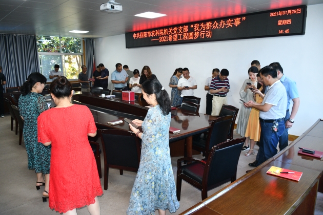 活動(dòng)最后,結合“學(xué)黨史、辦實(shí)事”實(shí)踐活動(dòng)要求,機關(guān)黨支部組織開(kāi)展“2021希望工程圓夢(mèng)行動(dòng)”愛(ài)心捐款,全體黨員和入黨積極分子紛紛響應號召、積極參與,共募集愛(ài)心款項790元,為貧困學(xué)子獻上一份愛(ài)心。涓涓細流凝聚大愛(ài),點(diǎn)滴實(shí)事惠及百姓,農科院機關(guān)黨支部將持續關(guān)注貧困學(xué)子的學(xué)習和生活,讓愛(ài)心傳遞延續,為群眾辦實(shí)事、辦好事。