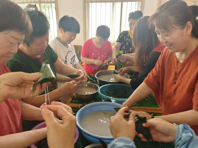 活動(dòng)現場(chǎng),志愿者們提前將粽葉、糯米、紅豆、棉線(xiàn)等材料擺放整齊,與老人們一起包粽子,眾人捋粽葉、包餡料、綁線(xiàn)繩,個(gè)個(gè)干得有模有樣,不一會(huì )兒一只只飽滿(mǎn)的粽子就包好了,志愿者們與老人們嘮家常,詢(xún)問(wèn)老人們的生活情況、身體狀況,為老人送上了節日的關(guān)懷與祝福,活動(dòng)現場(chǎng)其樂(lè )融融,洋溢著(zhù)歡聲笑語(yǔ),大家一起體驗了包粽子的樂(lè )趣,感受端午節的濃厚氛圍。