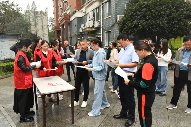 蔣雙豐首先向與會(huì )人員介紹了本次活動(dòng)舉辦的現實(shí)指導意義,希望廣大黨員干部認真對待,切實(shí)保護人民群眾生命財產(chǎn)安全;演練教官高鳳光講解了本次活動(dòng)基本知識要點(diǎn);五星辦事處副主任董勇對現場(chǎng)人員進(jìn)行了分工,黨員同志擔任志愿者,負責引導人員有序撤離。伴隨著(zhù)演練指令下達,參演單位和人員按照設定的地震場(chǎng)景,實(shí)施相應的應急響應行動(dòng),志愿者們組成人墻,引導人員從樓上安全、有序、迅速撤離到小區空地處,等全部人員撤離完成,志愿者們再撤離。