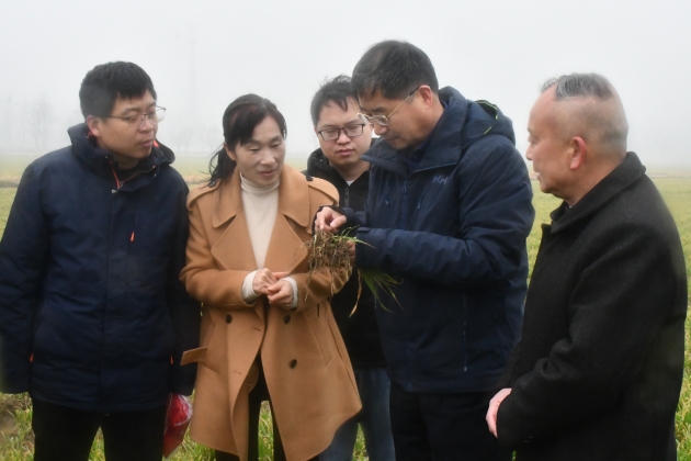 在啟動(dòng)儀式召開(kāi)前的3月6日,我院已先行派出本院小麥專(zhuān)家服務(wù)團在息縣、羅山調研指導春季麥田管理工作,并根據苗情實(shí)際情況對種植戶(hù)進(jìn)行現場(chǎng)指導。在息縣,專(zhuān)家服務(wù)團隊冒雨先后深入到息縣農場(chǎng)一分廠(chǎng)、二分廠(chǎng)實(shí)地調研小麥苗情,在了解到前期信陽(yáng)地區出現極端降溫雨雪天氣后,專(zhuān)家服務(wù)團隊詳細詢(xún)問(wèn)和調查當前小麥的長(cháng)勢、墑情、病蟲(chóng)草害發(fā)生發(fā)展情況,并根據當前麥田出現的主要問(wèn)題,有針對性的在肥水運籌、病蟲(chóng)草防控、土壤濕漬害化解等春季麥田管理工作上提出了指導性解決措施。