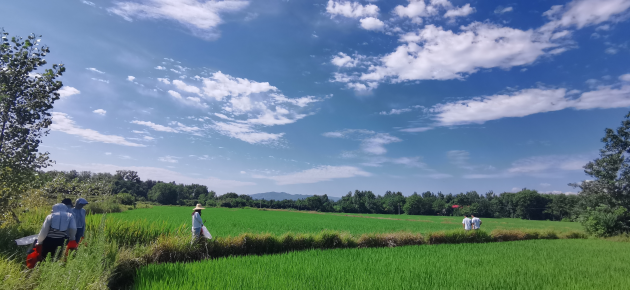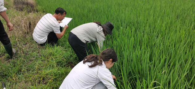 當前正值水稻生長(cháng)發(fā)育關(guān)鍵時(shí)期,也是稻薊馬、稻縱卷葉螟等病蟲(chóng)害易發(fā)期,為確保水稻生長(cháng)安全,近日,我院植物保護研究所、國家植物保護信陽(yáng)觀(guān)測實(shí)驗站、河南省信陽(yáng)作物有害生物野外科學(xué)觀(guān)測研究站、河南省作物有害生物綜合防控工程技術(shù)研究中心科研人員一行7人分別信陽(yáng)各縣區開(kāi)展水稻病蟲(chóng)害調查,了解水稻病蟲(chóng)害發(fā)生種類(lèi)及為害情況。