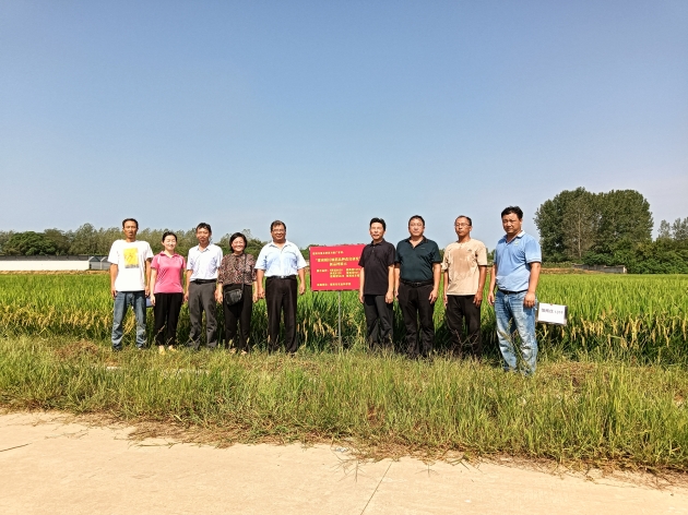 在陸廟示范基地,展示水稻品種長(cháng)勢喜人。王青林研究員認真察看每個(gè)品種的綜合表現,對專(zhuān)項取得的成績(jì)給予充分肯定,并提出三點(diǎn)建議:一是針對灌漿期的秈稻要采取間歇淺水灌溉并酌施粒肥,做好病蟲(chóng)害防治等田間管理措施;二是做好秈稻灌漿結實(shí)期的防鳥(niǎo)畜等工作,爭取把產(chǎn)量損失降到最低;三是針對播種較晚的優(yōu)質(zhì)品種,加強肥水管理及稻縱卷葉螟防治工作。