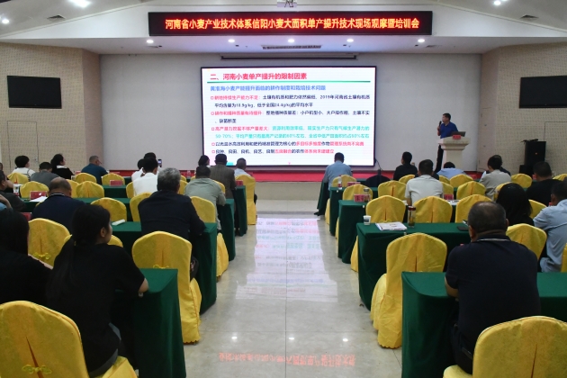 5月9日,由省小麥產(chǎn)業(yè)技術(shù)體系主辦,我院和羅山縣政府承辦,信陽(yáng)小麥大面積單產(chǎn)提升技術(shù)現場(chǎng)觀(guān)摩暨培訓會(huì )在我市圓滿(mǎn)舉行。