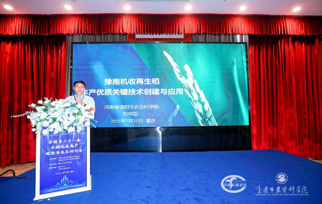 劉祥臣研究員受邀作題為《豫南機收再生稻豐產(chǎn)優(yōu)質(zhì)關(guān)鍵技術(shù)創(chuàng )建與應用》報告,我院是48個(gè)報告中唯一一個(gè)地市級科研院所。報告聚焦豫南稻區再生稻實(shí)際生產(chǎn)中的關(guān)鍵技術(shù)問(wèn)題,并系統展示信陽(yáng)再生稻研究歷史、研究?jì)热莺蛻锰剿鞯碾A段性成果,獲得在場(chǎng)專(zhuān)家的高度認可與好評。