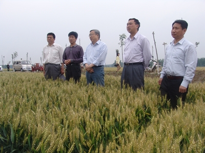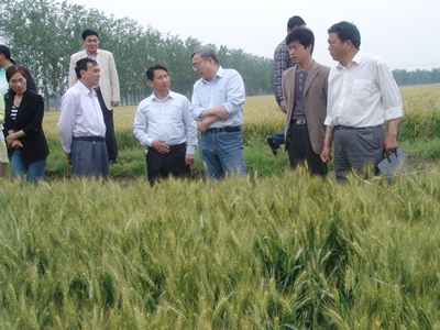 在息縣縣委、縣政府負責同志的陪同下,肖世和首先察看了以我院作為技術(shù)依托單位實(shí)施的息縣萬(wàn)畝稻茬小麥高產(chǎn)創(chuàng )建核心示范區,該示范區位于息縣孫廟鄉龍廟村,面積500畝,選用品種為揚麥15,核心技術(shù)為藥劑拌種、淺旋機條播、機械開(kāi)溝、氮肥前移、“一噴三防”,現場(chǎng)測產(chǎn),理論產(chǎn)量八五折后達503.8公斤?疾旖M還察看了息縣孫廟鄉弱筋小麥鄭麥004種植區和信陽(yáng)小麥綜合試驗站設在息縣白店鄉的砂漿黑土區強筋小麥地力提升與水肥管理技術(shù)集成示范區,該示范區小麥品種為強筋品種鄭麥366,主要采用秸稈還田、測土配方施肥、水肥調控及高產(chǎn)栽培配套技術(shù),大田小麥長(cháng)勢良好,預計產(chǎn)量可突破600公斤。肖世和對這兩個(gè)示范區小麥長(cháng)勢感到非常滿(mǎn)意,肖世和表示,在我國稻茬小麥能取得500公斤以上的產(chǎn)量非常不易,信陽(yáng)小麥單產(chǎn)能達到600公斤更是非常難得,他對信陽(yáng)小麥綜合試驗站為服務(wù)信陽(yáng)小麥生產(chǎn)工作表示贊賞。