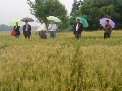冒著(zhù)綿綿細雨,肖世和還檢查了我院位于平橋區甘岸鎮的小麥試驗基地,對信陽(yáng)小麥綜合試驗站承擔的小麥不同生育期濕害、漬害特點(diǎn)與爛場(chǎng)雨對產(chǎn)量和品質(zhì)的影響、長(cháng)江中下游小麥新品種適應性鑒定、微量元素對強筋小麥產(chǎn)量品質(zhì)的影響等體系試驗進(jìn)行了檢查,對信陽(yáng)小麥綜合試驗站的任務(wù)完成情況比較滿(mǎn)意。