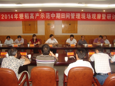 2014年粳稻高產(chǎn)示范中期田間管理現場(chǎng)觀(guān)摩暨研討會(huì )召開(kāi)