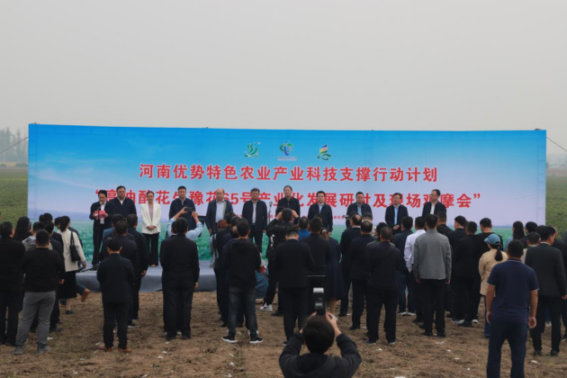 二、10月12日,由河南省農科院、國家花生產(chǎn)業(yè)技術(shù)體系、河南省花生產(chǎn)業(yè)技術(shù)體系主辦,息縣人民政府承辦,信陽(yáng)市農科院協(xié)辦的河南優(yōu)勢特色農業(yè)產(chǎn)業(yè)科技支撐行動(dòng)計劃高油酸花生豫花65號產(chǎn)業(yè)化發(fā)展研討?hù)攥F場(chǎng)觀(guān)摩會(huì )在息縣成功召開(kāi)。河南省農科院副院長(cháng)衛文星河南種業(yè)集團董事長(cháng)侯傳偉,信陽(yáng)市委常委、副市長(cháng)李俊,信陽(yáng)市農科院黨組書(shū)記李杰、院長(cháng)鐘思志,息縣縣委書(shū)記管保臣、代縣長(cháng)鄭春等出席會(huì )議。與會(huì )人員現場(chǎng)觀(guān)摩了息縣路口鄉彎柳樹(shù)村河南省“四優(yōu)四化”優(yōu)質(zhì)高油酸花生示范基地內豫花65號田間生長(cháng)表現。經(jīng)專(zhuān)家組現場(chǎng)測產(chǎn),豫花65號千畝示范方平均畝產(chǎn)達430.22公斤。研討會(huì )上,與會(huì )專(zhuān)家代表圍繞高油酸花生品種、種植、加工及產(chǎn)業(yè)化發(fā)展做了交流發(fā)言,分析了現狀與問(wèn)題,提出了對策與建議。
