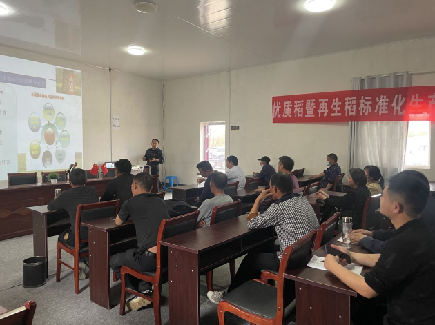 在羅山縣農業(yè)農村局組織舉辦的農業(yè)技能培訓會(huì )上,省科技特派員服務(wù)團隊為種植大戶(hù)作了《豫南水稻綠色優(yōu)質(zhì)高效栽培技術(shù)》的技術(shù)講座。從品種、稻田環(huán)境、不同育秧方式選擇、水肥管理、病蟲(chóng)害的綠色防控等多個(gè)生產(chǎn)環(huán)節詳細的講解了優(yōu)質(zhì)稻的標準化生產(chǎn)技術(shù),論述了豫南稻區種植再生稻、優(yōu)質(zhì)稻的區域優(yōu)勢和效益優(yōu)勢,鼓勵種田大戶(hù)用科學(xué)的方法生產(chǎn)優(yōu)質(zhì)稻、再生稻,把好的區域優(yōu)勢轉換為產(chǎn)量與效益優(yōu)勢。